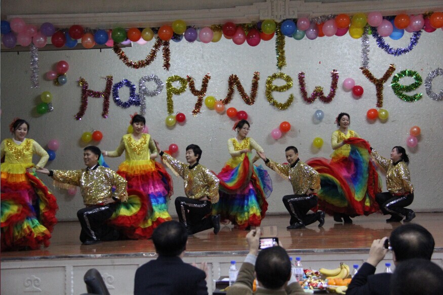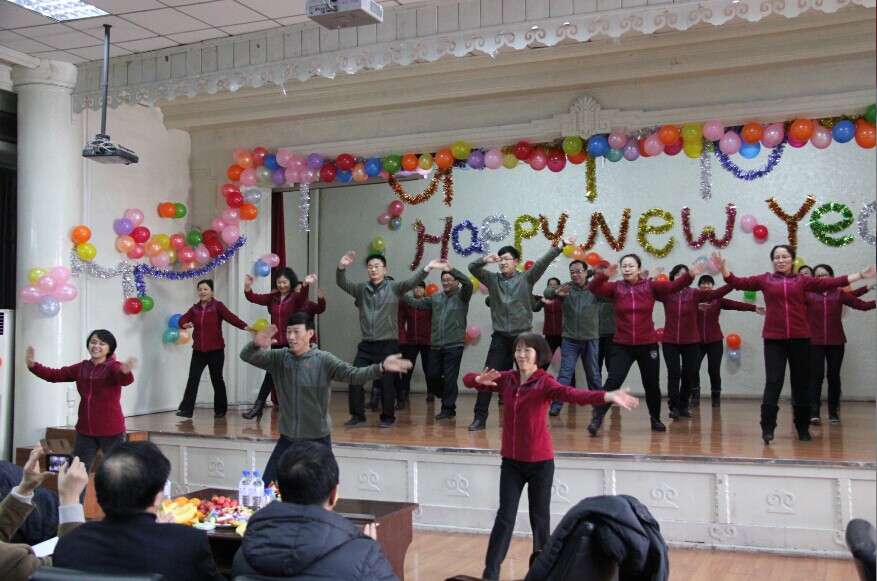 演出在由学院领导、行政人员所在第八工会小组《众人划桨开大船》的歌声中拉开序幕。整场演出汇集了学院各工会小组精心编排组织的节目,包括舞蹈、歌曲、手语、三句半、哑剧等多种艺术表现形式,内容丰富,精彩纷呈。舞蹈《西班牙斗牛舞》、《最炫民族风》等节目带来了浓郁的民族风情,让观众沉浸在时而悠扬、时而激昂的旋律变幻之中;欢快的舞蹈《鸭梨大》、《恭喜发财》热情奔放的魅力,内涵丰富,老师们柔美的身姿,高超的技艺,吸引着观众们的眼球;歌曲《感恩的心》、《好人好梦》《年轻的朋友来相会》《家在东北》《明天会更好》和手语节目《感恩的心》,曲调悠扬,积极向上,每个节目都感染着现场的观众们;哑剧《门诊风波》和三句半《贺新年》,诙谐幽默,赢得了观众的阵阵掌声。