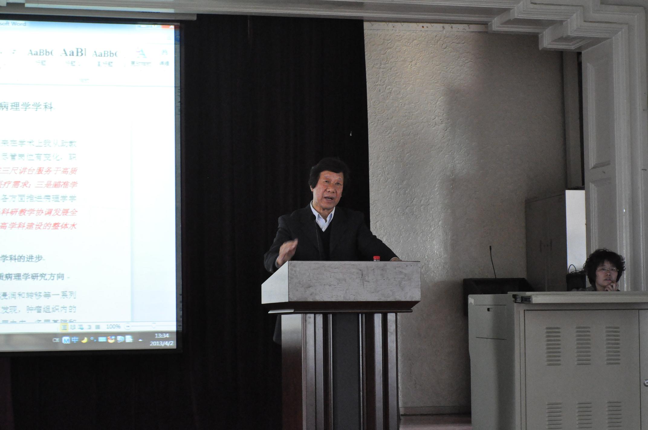 在报告中,原新葡的京集团35222vip常务副校长、 博士生导师李玉林教授结合自己40年的工作经历,以“瞄准学术发展前沿,创建一流病理学科”为题,回顾并总结了如何在实际的科研工作中,结合国际学术发展的动态,大胆开启肿瘤间质病理学研究方向,发现肿瘤微循环的机能反应规律,并开创恶性肿瘤升压化学药物疗法的历程;介绍了通过获取毛囊间充质干细胞,完成毛囊间充质干细胞组织工程构建的技术突破,进而促进我国再生医学研究的价值;以及以高水平的科学研究推动高水平人才培养的学科发展模式。李玉林教授最后以“做人要知足,做事要不知足,做学问要知不足”与全院师生共勉。
