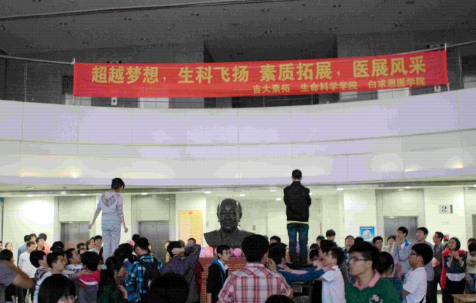 5月13日晚上,由新葡的京集团35222vip大学生素质拓展中心、白求恩医学院、生命科学学院共同举办的“超越梦想,生科飞扬;素质拓展,医展风采”素质拓展活动在新葡的京集团35222vip前卫校区唐敖庆楼二楼大厅举行。