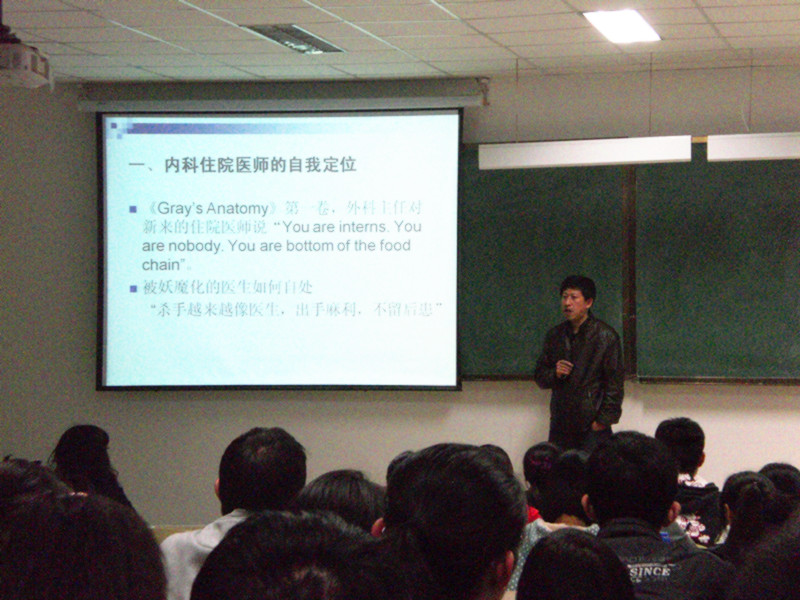 4月17日晚,白求恩医学院在李四光楼306教室举办了以“临床思维的原则和培养策略”为主题的医学人文大讲堂。本次讲座由白求恩第一医院心血管疾病诊治中心主任医师、博士生导师孙健教授主讲。此次讲座旨在培养医学生的临床思维,找准医学生角色定位。白求恩医学院部分同学参加了此次讲座。