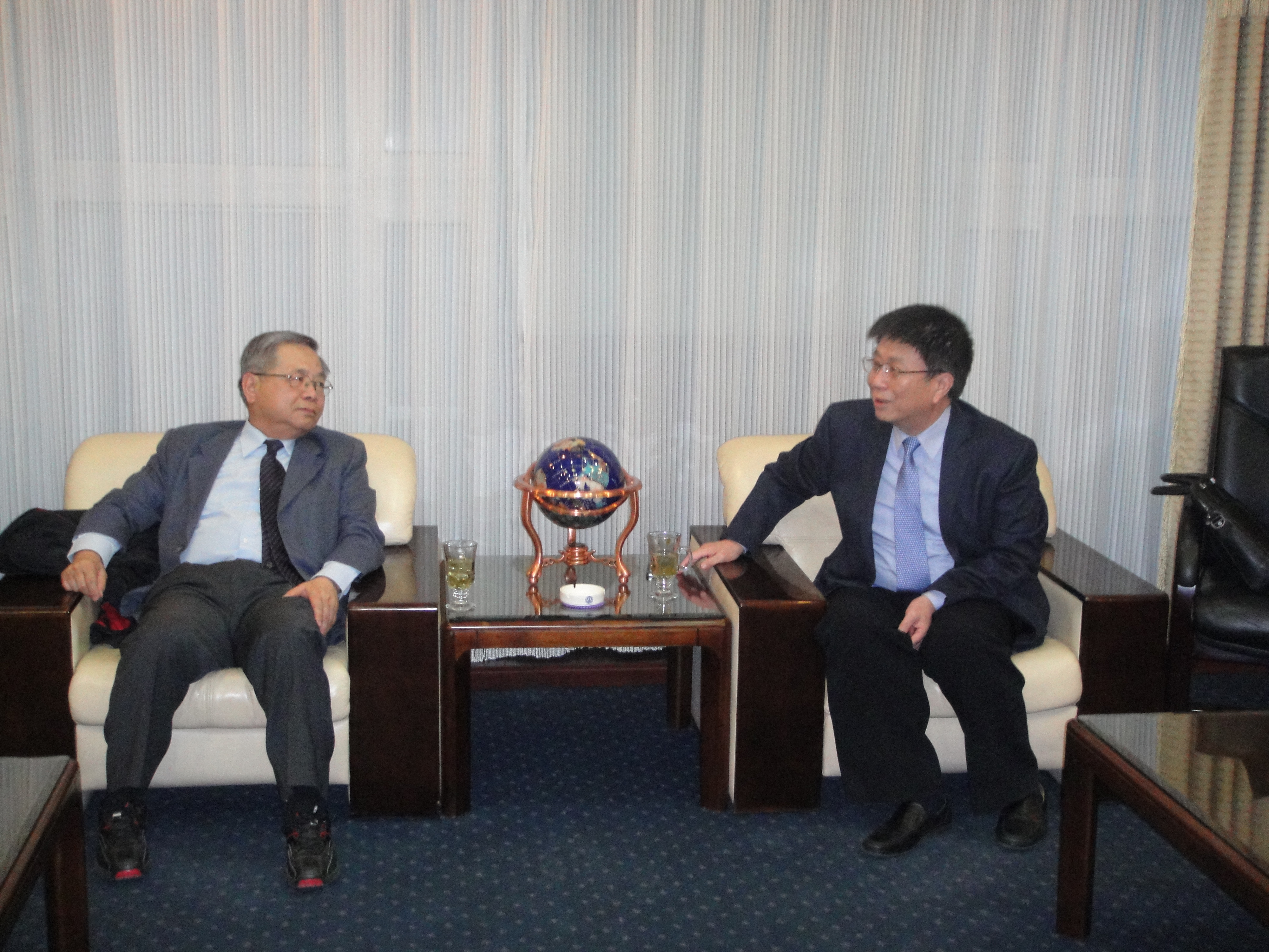 最后,王冠军、李凡等与李建贤在友谊会馆进行了会谈,并就两校教改合作计划与时程研拟进行了讨论。王冠军对李建贤等给予的指导表示感谢,同时表示要学习借鉴阳明大学等高校的成功经验,全面推动学校医学教学改革。李建贤亦表达了愿做两岸沟通的桥梁,一起为医学教育事业努力。
