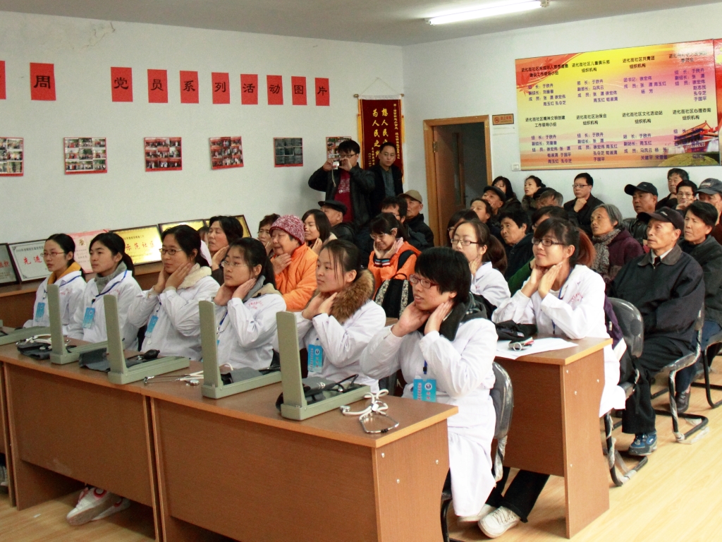 湖西街道进化街社区副书记刘蔷蔷首先宣布活动开始。青协宣讲队员徐鑫向在场居民介绍了伟大的国际主义战士诺尔曼·白求恩的生平事迹;在接下来的健康普及宣讲中,宣讲队员吴瑜诗向在座的居民们讲授了高血压的基本医学知识和日常防治方法;随后,宣讲队员黄丹又向居民们介绍了糖尿病的预防及注意事项。最后,医疗队队员为居民们测量了血压,并对居民们提出的日常保健问题进行了耐心与细致的解答。活动期间居民们参与踊跃,活动取得了良好效果。
