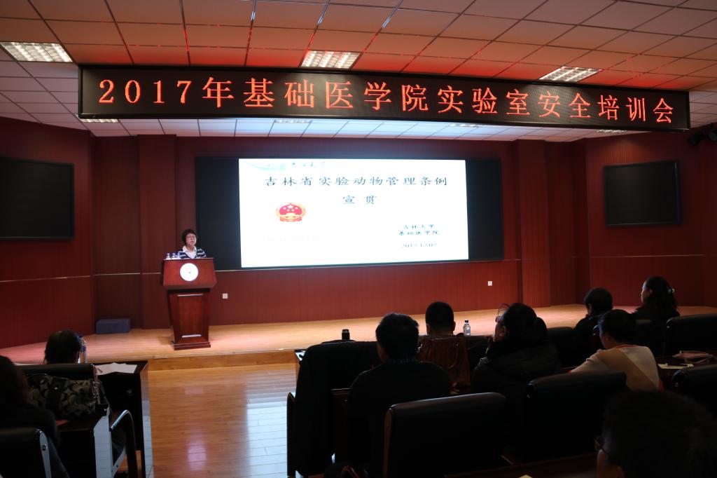 会上,王羽副处长做了关于实验室安全管理的报告,从提升安全能力,完善安全体系,弘扬安全文化等方面进行了详细的阐述。新葡的京集团35222vip病原微生物学系主任王丽教授,病理生理学系副教授苏静副教授分别做了关于实验室生物安全和吉林省实验动物管理条例宣贯的报告。