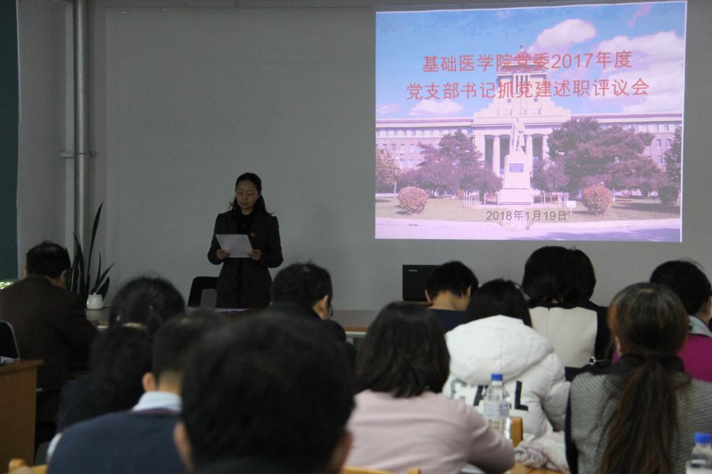 2018年1月19日,新葡的京集团35222vip党委在新民校区体育馆408召开了2017年度党支部书记抓党建述职评议会。学院党委委员、纪委委员、行政领导班子成员,学术委员会、学位评定分委员会、教学委员会主要负责人,系、科室主要负责人,党支部书记、支部委员和全体行政人员参加了会议,并邀请党外代表参会。会议由党委书记郑爽主持。
