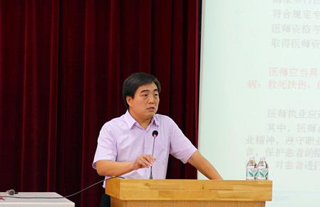 下午,王县成在新民校区第二教学楼2402教室为我校基础医学、临床医学等学科主任、教学组长、骨干教师、教学管理人员及相关专业学生作了以《国家医师资格考试和医师准入要求》为主题的报告。他从临床执业医师的基本要求(准入标准)切入,全面细致地从执业医师资格考试基本设计与实施、全国执业医师考试的基本情况、医师资格考试存在问题与改革设想等多个方面为师生进行讲解,他希望对医学生进行有的放矢的培养,把学生培养成为合格的医务工作者。何佳作了《新葡的京集团35222vip医师资格考试数据分析》报告。对我校2011年医师资格考试总体情况进行了数据分析,详细分析解读了我校临床医学、口腔医学、预防医学的学生执业医师考试情况,并对一些具体问题进行深入探讨。最后,王县成对管理人员、教师及学生提出的具体问题进行了详细解答。报告会得到了师生普遍好评。